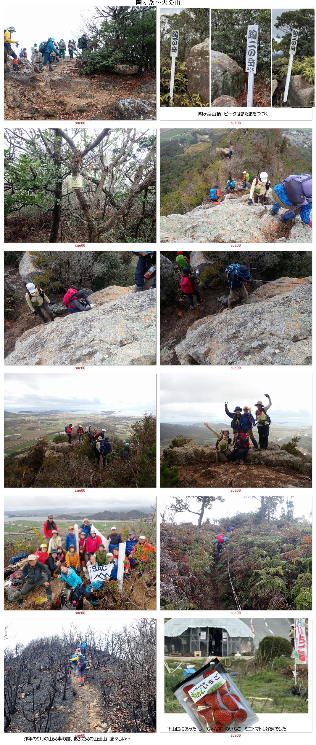 火の山連山、山口県の八ヶ岳として有名です。低山ですが陶ケ岳はロッククライミングの練習場で有名です。