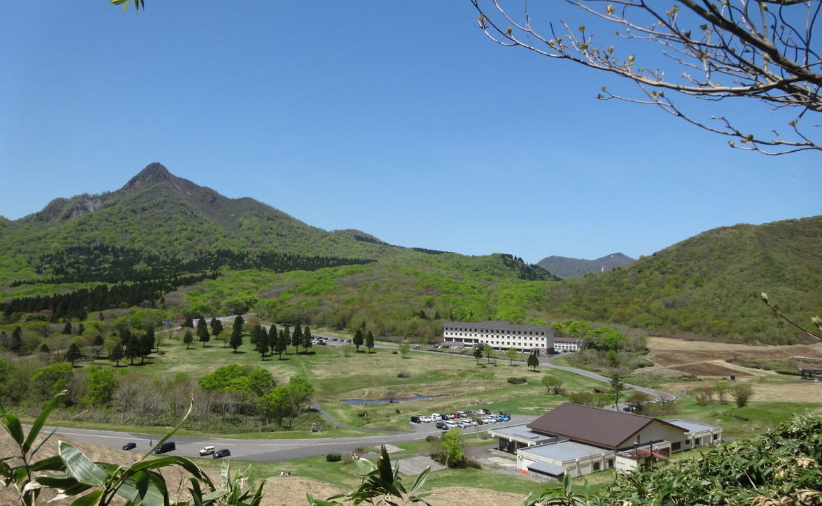 鏡ヶ成高原は、標高1000m、すっぽり雨雲の中で視界もなく、やむなくホテルに退散して雨宿りとなりました。1時間待っても止む気配もなく、メンバー全員の山への意欲は次第に諦めへと変わっていきました。