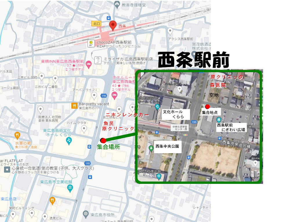 ※角辺りでお待ちください。バスは集合時間の5分後くらいに到着します。