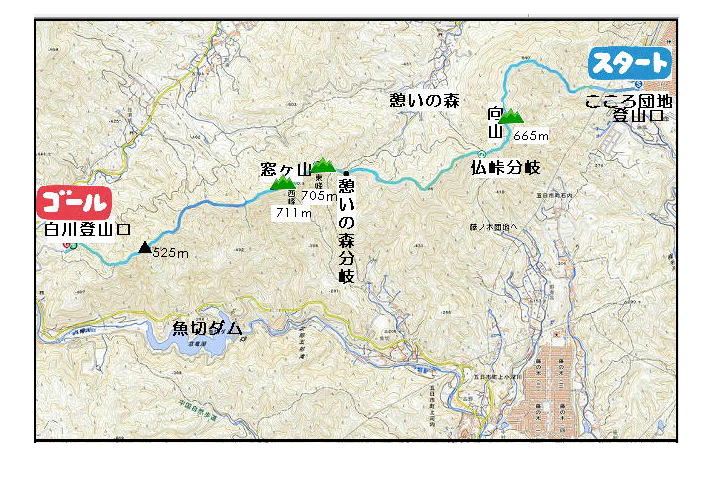 こころ団地より、向山~仏峠~窓ヶ山東峰~窓ヶ山西峰~白川登山口を縦走するのロングコース。