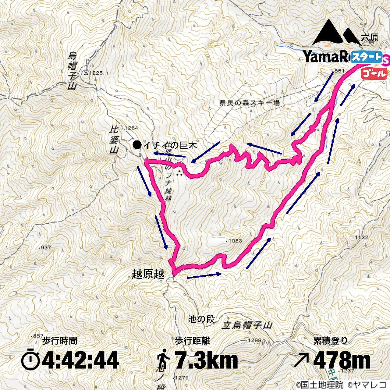 疲弊困憊した同行者もおり、越原から池の段を超えるルートは断念して、県民の森センターを目指して下山。