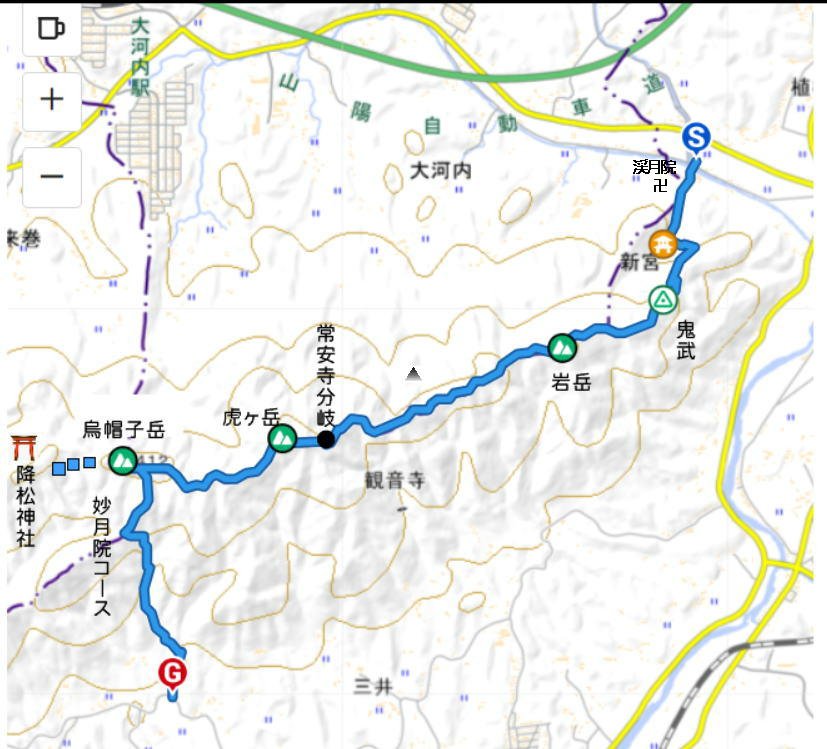 下山は、地図に載っていない「渓月院コース」というバリエーションルート。近道になるが少し急な荒れ道だ