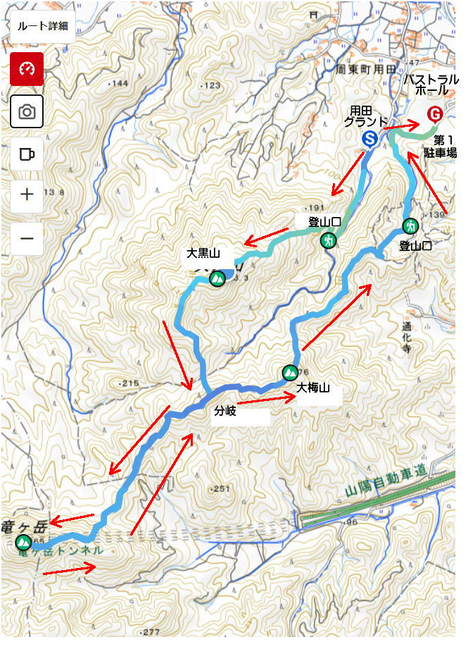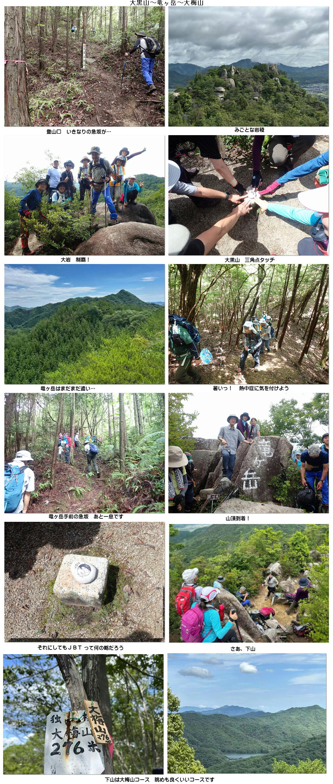 竜ヶ岳への上りは大黒山コースを利用、下りは大梅山コースにて下山。